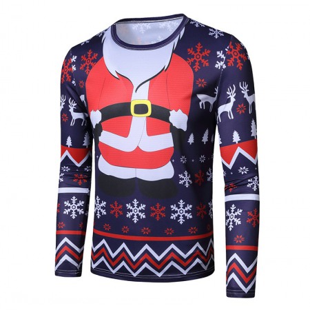 New 3D Personality Printing Fashion Men's Christmas Long Sleeve T-Shirt