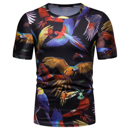 New Summer Men's Parrot Print Short Sleeve T-Shirt